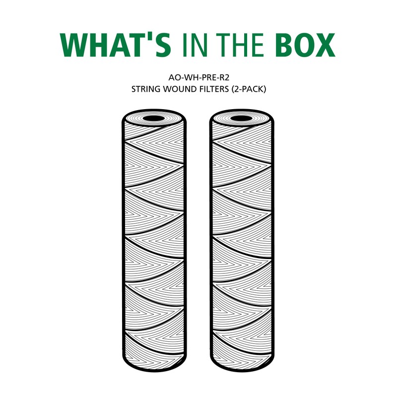 AO Smith 2.5"x10" 35 Micron Sediment Water Filter Replacement Cartridge - 2 Pack - For Whole House Filtration Systems - AO-WH-PRE-R2
