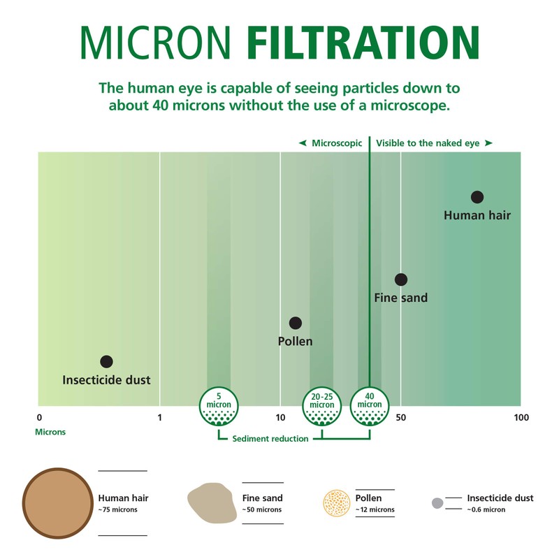 - 5 micron filtration - reduces sediment smaller than the human eye can see. NSF Certified to Standard 42 for removal of particulate class V.