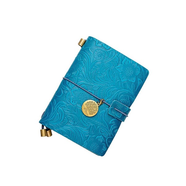 aoaoway Refillable Leather Journal, Handmade Blue Leather Notebook with Bookmark for ...