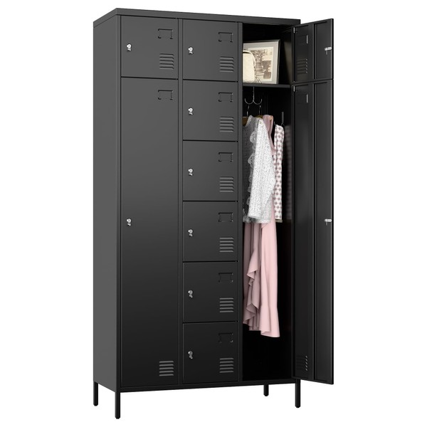 Aobabo Metal Storage Locker for empolyees, Metal Lockers with Hooks, for School Home Office, Garage, 10 Doors, Assembly Required, Black