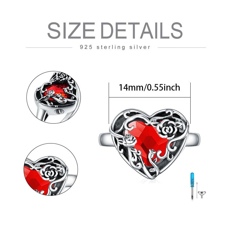 - ♥Size♥Rose Heart URN: 12*14mm (0.47"*0.55") ♥ This silver ring can hold a little bit of dried flowers, dirt,hair, perfume, ashes cremains, it has come with Funnel Filler Kit,if the funnel is not fit the screw, you could roll a piece of paper into a funnel shape to put the ashes in.