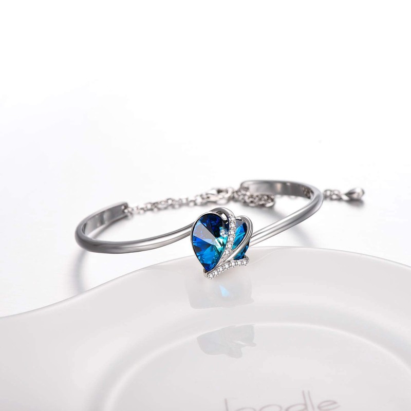 AOBOCO I Love You Jewelry - Pulsera de plata de ley azul y morado con corazón adornada con cristales de Austria, joyería de aniversario de cumpleaños para mujeres, 20,32cm, Metal, cristal