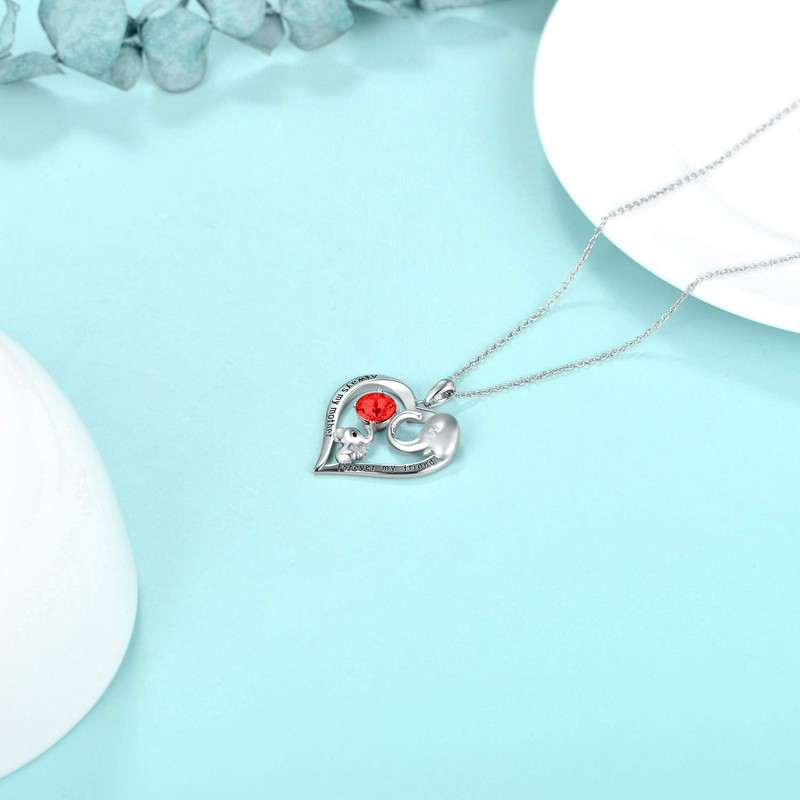 AOBOCO Mom Necklace Sterling Silver Love Heart Lucky Elephant Necklace with Birthstone Crystals, Birthday Mother Day Jewelry Gifts for Mom (01-Jan-Created Garnet)