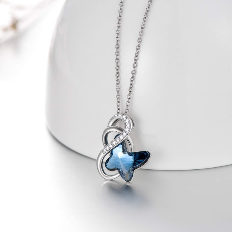 - ♥ MATERIAL: ♥ SGS certified product, hypoallergenic 925 sterling silver butterfly necklace and with blue crystals