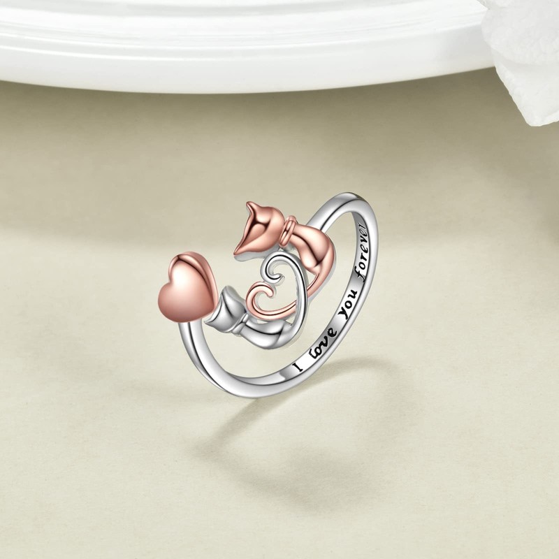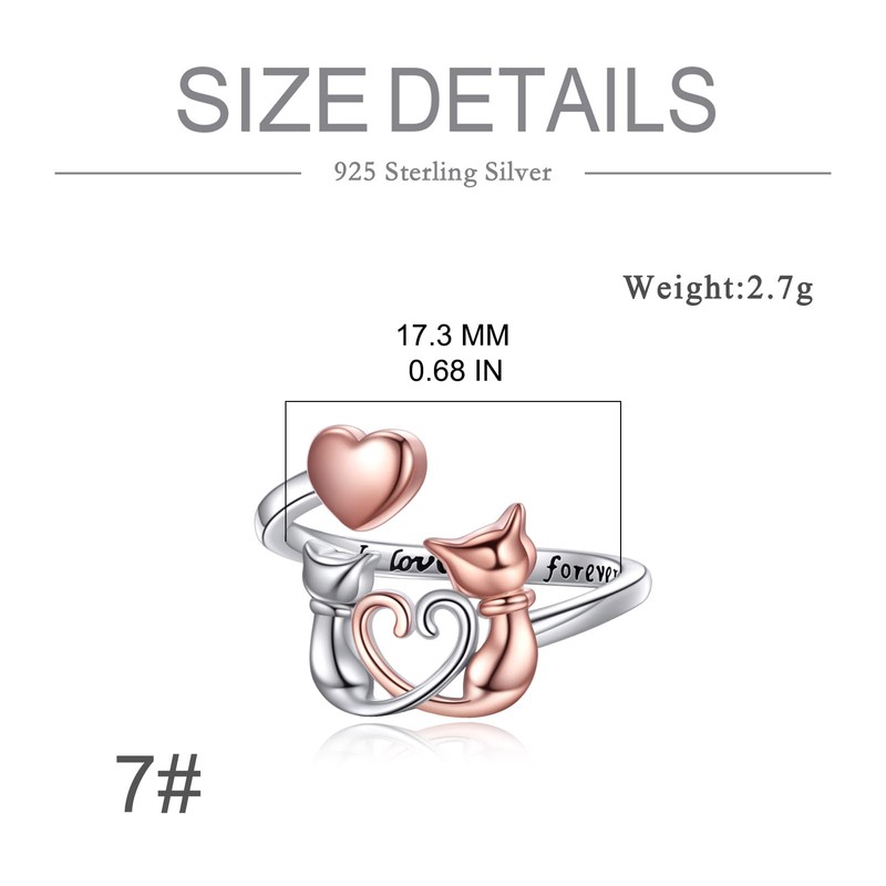 - ღ SIZE & WEIGHT ღ 12*11mm silver cat rings with 6.5*5.5mm rose gold platedSkin-friendly s925 sterling silver heart, 2.6g in weight