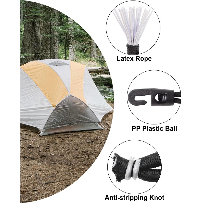 • Occasion: These tarp tie downs are applied for tents, tarp, canopy, wall pipe, screen, canopy shelter, caravans, fishing rods, etc