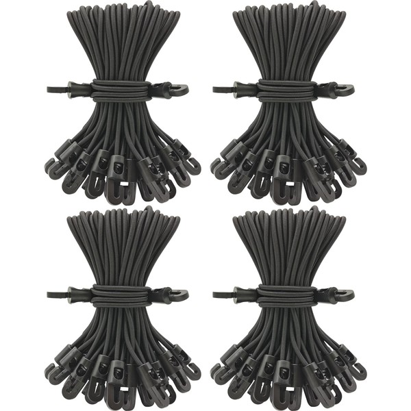Size: 6 Inch 100 PCS Black Hook Bungee Cord