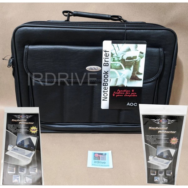 AOC/Omega NEW Leatherette Black PC Notebook Briefcase Carrying Bag + 12"-18" KB Protector