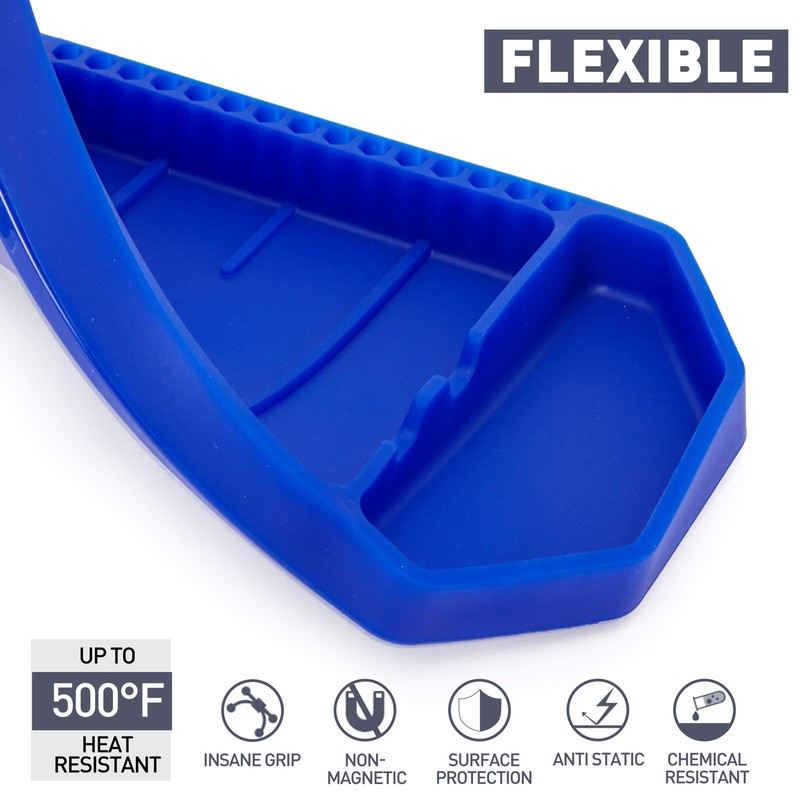 - Heat Resistant and Flexible: These tool trays can withstand temperatures up to 500F. Their unique material holds tools at up to a 70 angle. They are slip-resistant, making them suitable for any working surface.
