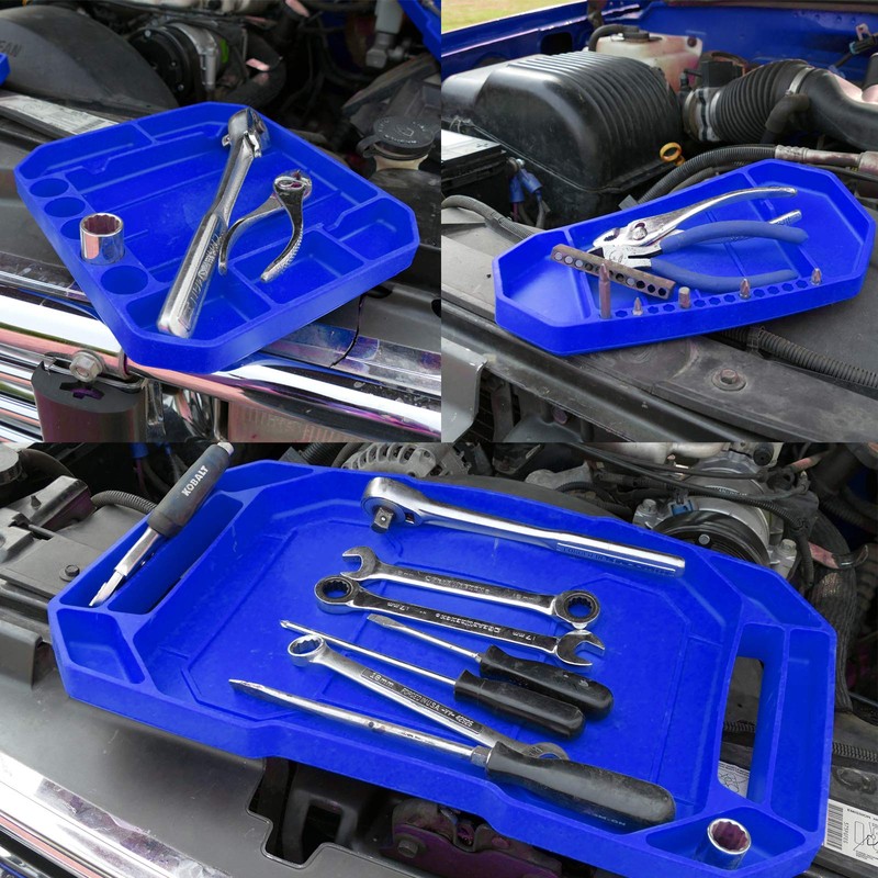 - Easy Access: These non-slip, flexible tool trays effectively organize your tools such as fasteners, hammers, wrenches, sockets, drill bits, nuts, bolts, etc. They ensure your tools are easy to locate, promoting orderly work and improved efficiency.