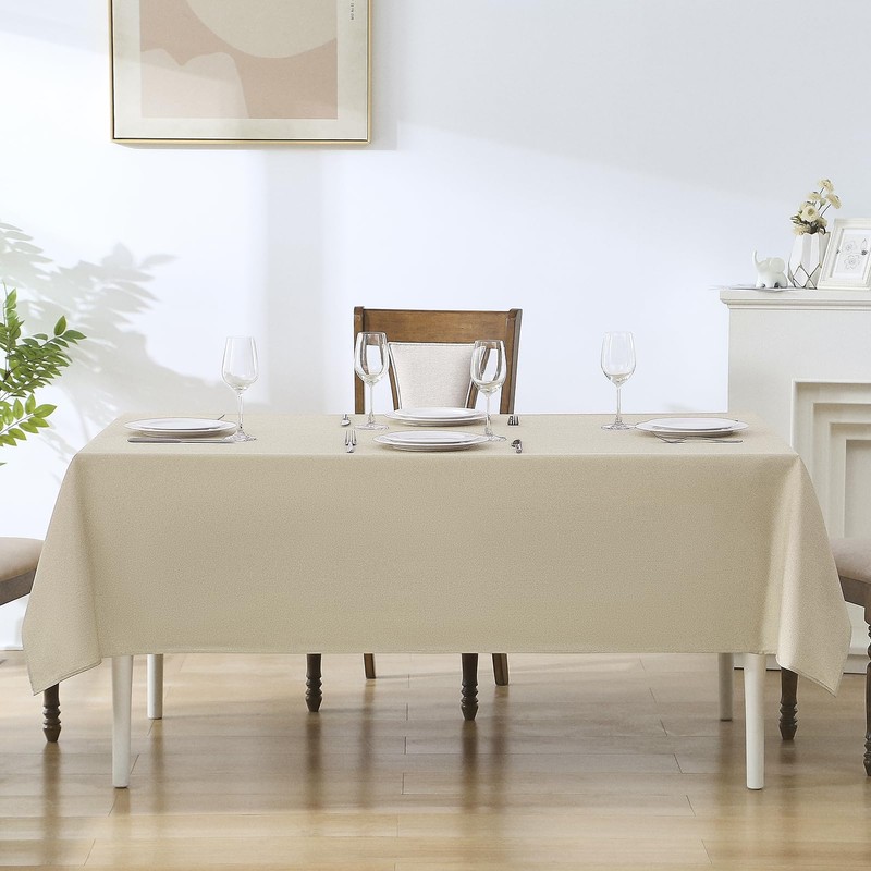 Aocoz Faux Linen Rectangle Tablecloths 60x102 Inch Natural Waterproof Table Cloths for Dining Table Banquets Buffet Parties and Wedding 1 Pack
