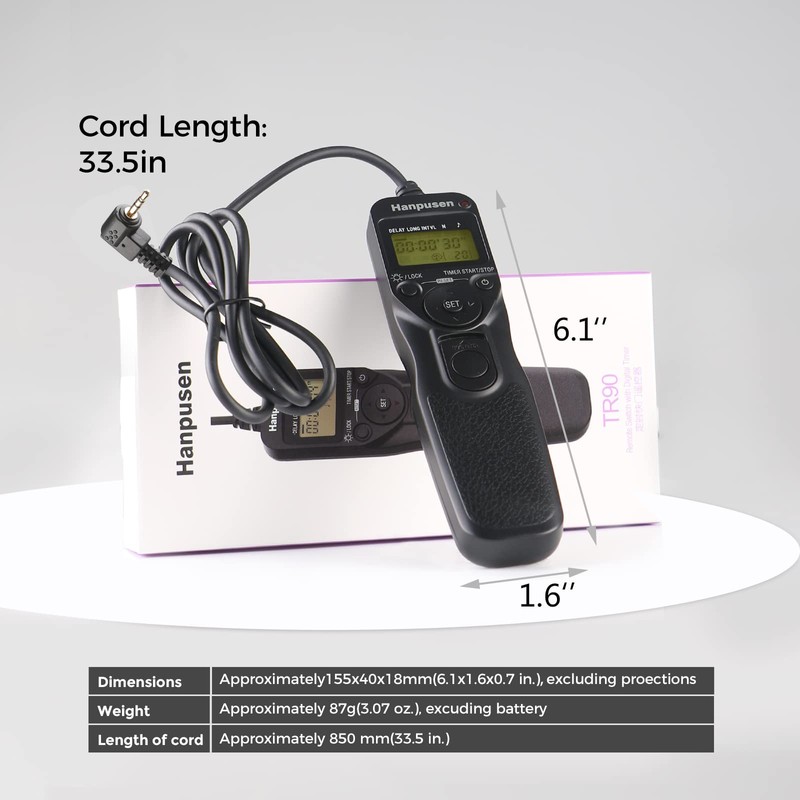 - This timer remote control supports single shooting, bulb shooting, delay shooting and timer shooting modes,And design for group, macro, long exposures, continuous, motion shooting, etc.