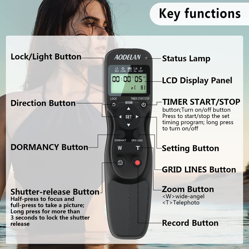- Easy to read: With LCD display and the timer screen has a backlight, making it easy to read and the backlight is very handy for working in low light. Reduce camera shake and allows you to trigger your camera wirelessly up to 60 metres.
