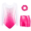 AODOKAT Gymnastics Leotards for Girls with Shorts Set, Long Sleeve/Sleeveless Dance Leotard Sparkle Ballet Dancewear for Kids 5-14 Years (Pink-long sleeved, 7-8 Years)
