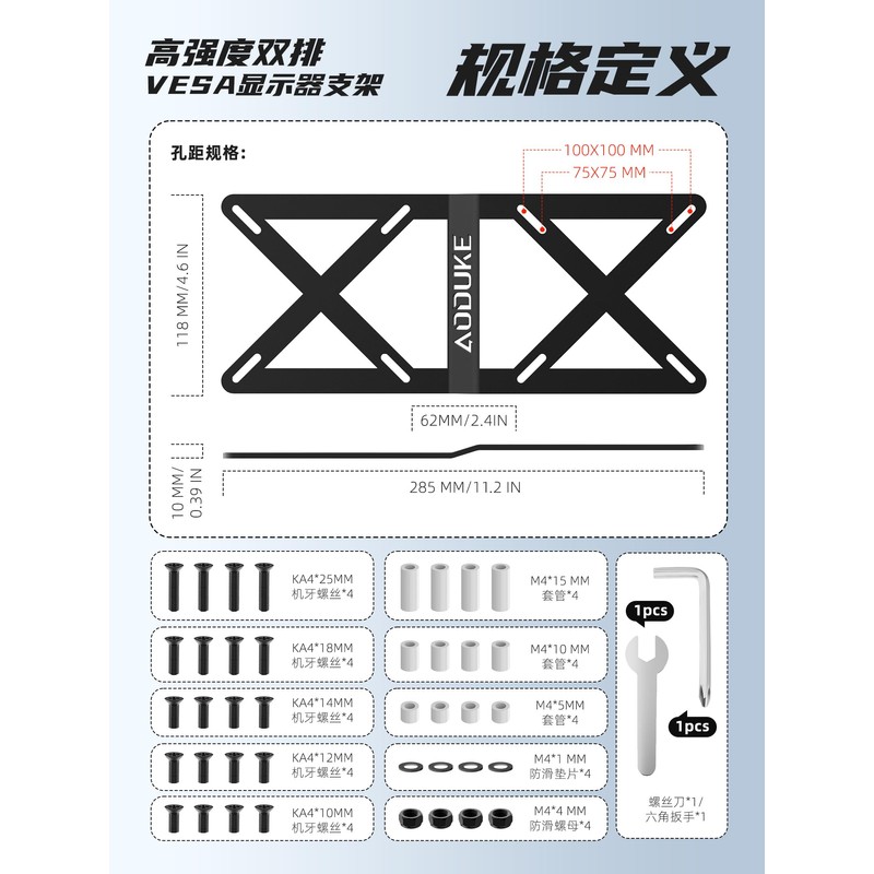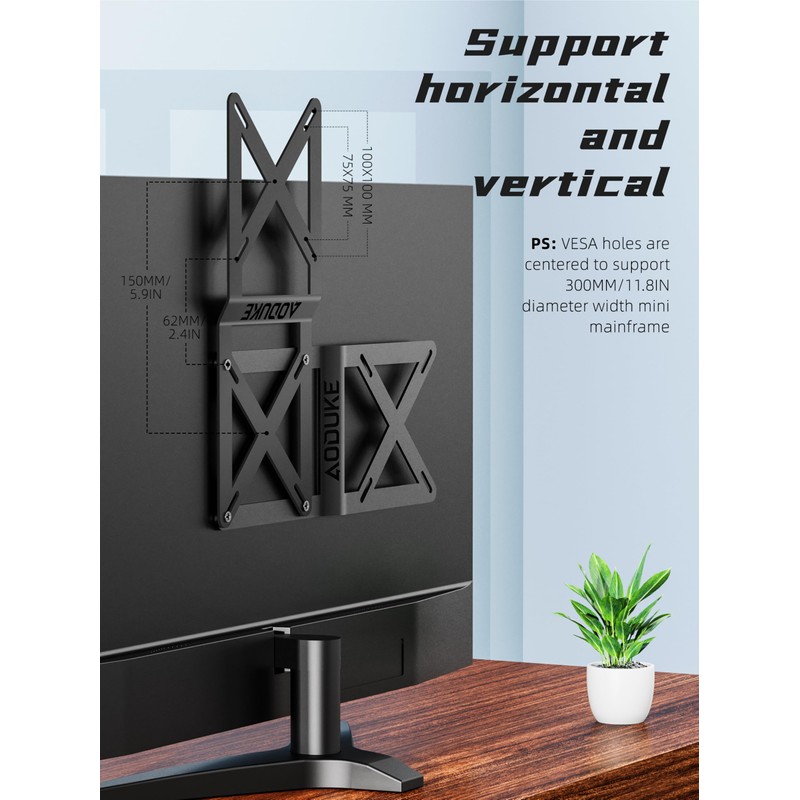 - 1.Expand Your VESA Mount Functionality – Instantly add a second VESA mounting plate to your monitor. Perfect for securely mounting mini PCs (up to 280mm width) behind your screen for a clean and space-saving setup.