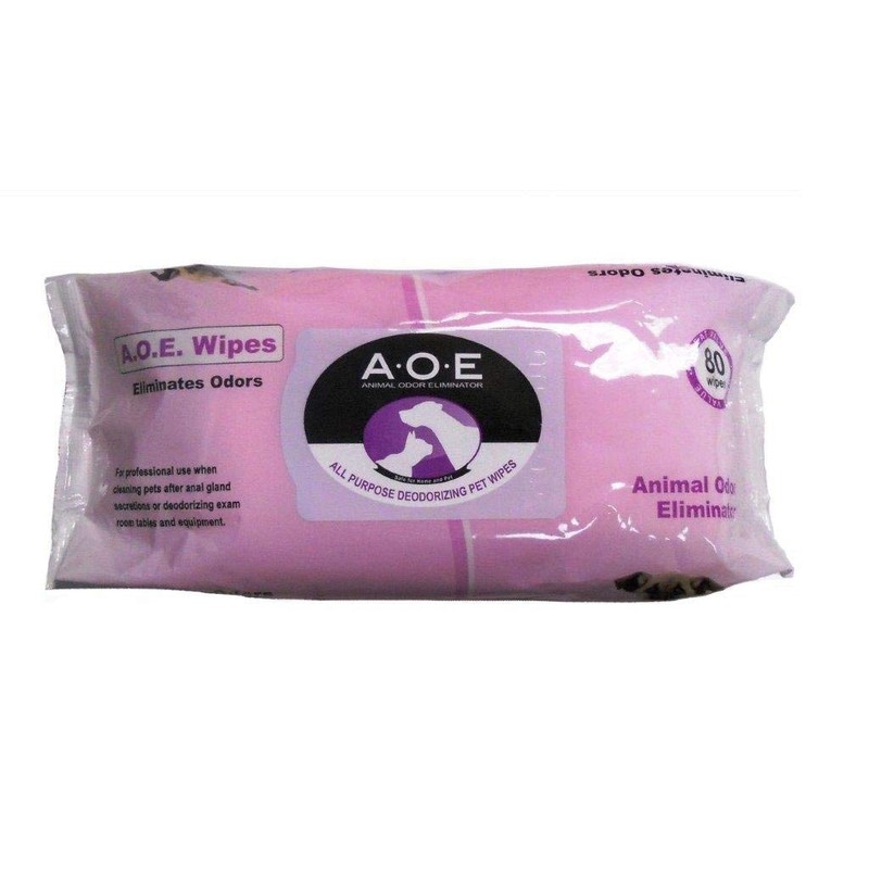 - AOE (Animal Odor Eliminator) All Purpose Deodorizing Pet Wipes soothes with a pleasant scent and easy clean-up for ears and anal gland excretions.
