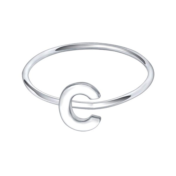 AoedeJ 925 Sterling Silver Stackable Initial Letter Rings Capital Letter Ring Charm Initial Band for Women (C, 9)