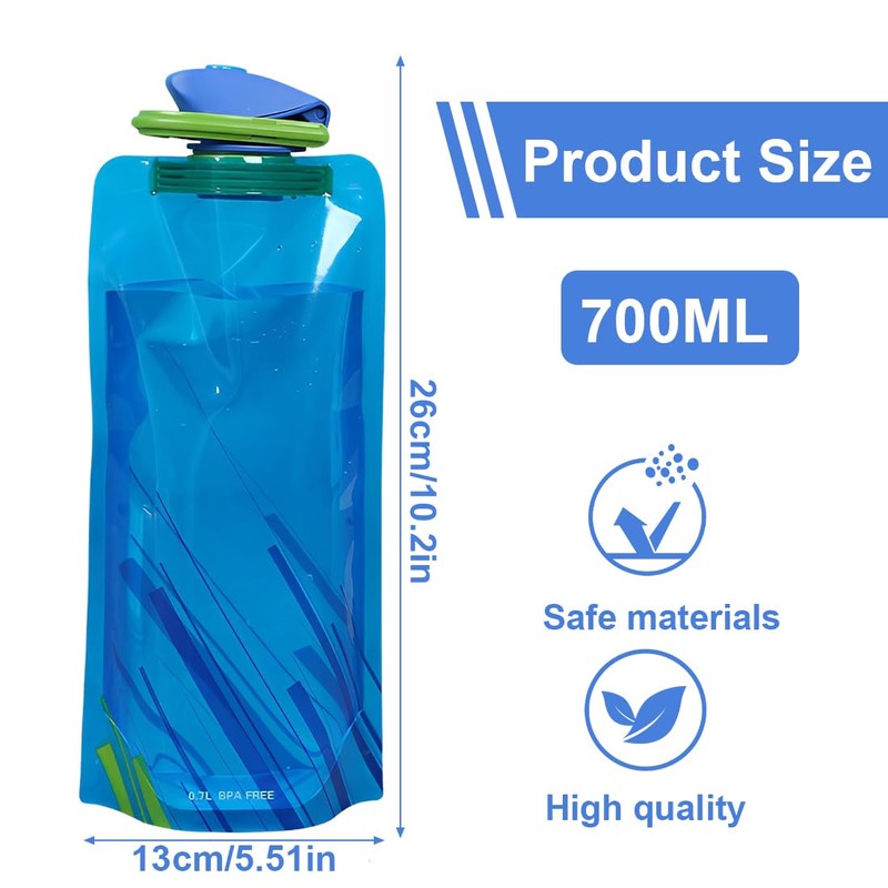 - Portable and lightweight: the foldable water bottle can be easily folded. With the practical hanging buckle, the bottle can be attached to bags, belts, etc., making it easier to carry.