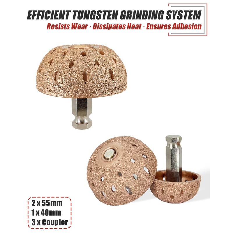 - 【Efficient Grinding System】Includes 3 tungsten steel grinding heads(55mm x 2, 40mm x 1) with coupler. Highly wear-resistant and rapid heat dissipation. Uniform abrasive grains ensure consistent removal of worn rubber layers for optimal patch adhesion.