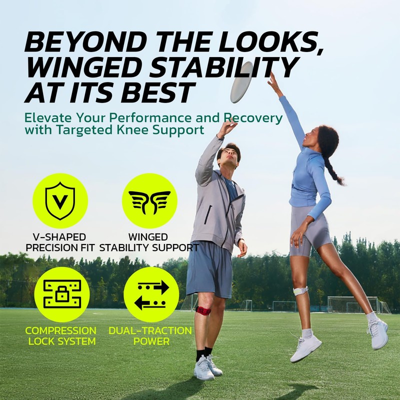 - [Angel Wing Design for Style and Protection] Inspired by the elegance of angel wings, this patella band seamlessly blends functionality with a unique aesthetic. Its thoughtful design ensures full knee protection while maintaining a sleek, modern appearance. The central logo guides easy alignment, ensuring the strap fits securely and performs effectively during workouts or daily use.