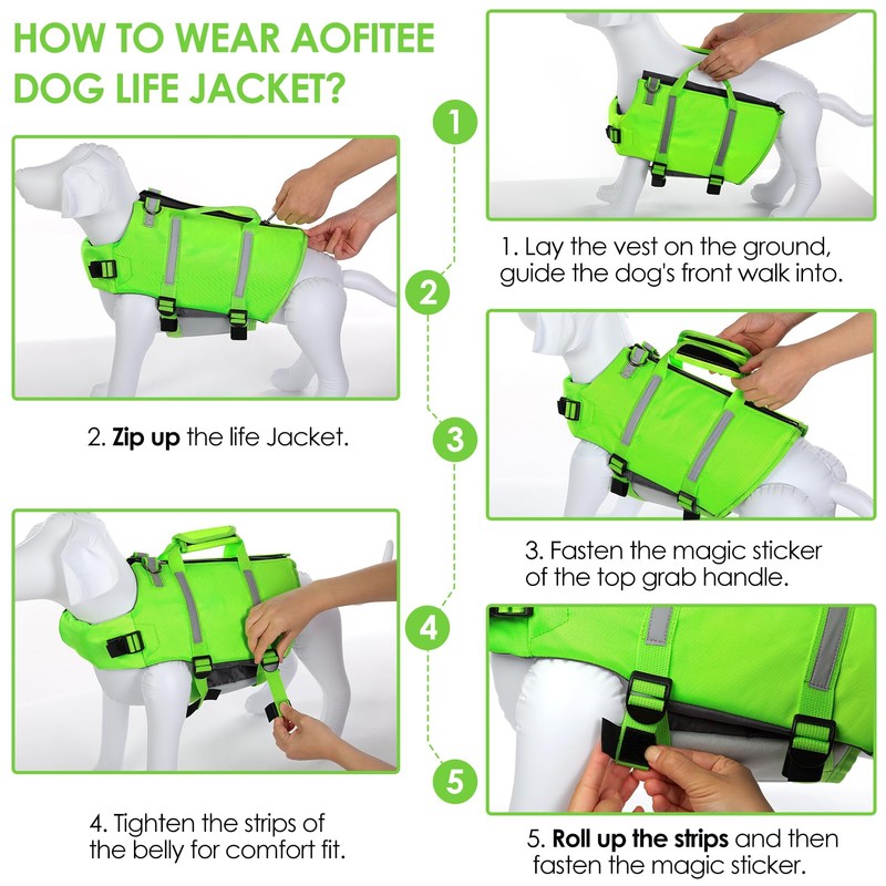 - Suitable for Small Medium Large Dogs: 6 Sizes(XS, S, M, L, XL, XXL) available for AOFITEE dog life vest and featuring adjustable straps. Please use soft tape to measure your dog and select the size based on the Chest Girth (the widest part of ribcage) and Back Length (base of the neck to base of tail). If Between Sizes, please Select One Size Up
