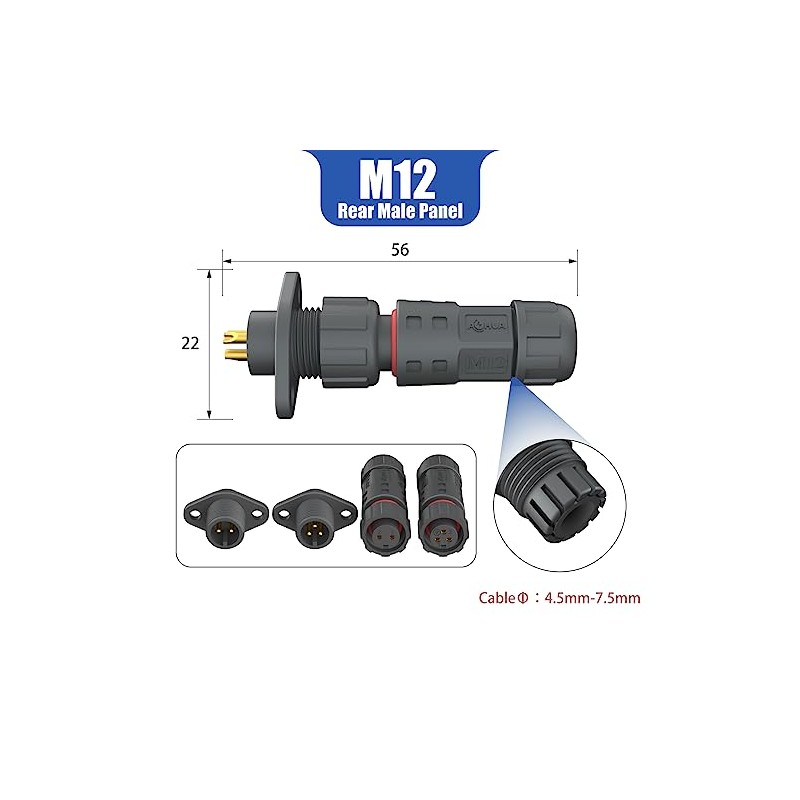 - ✅【Packaging】: Each pack includes 6 sets of M12-2 pin waterproof connector with 2 sizes of grommets (3.5-5.5mm & 5.5-7.5mm)--making it suitable for most common power cords. This 2-pin connector, featuring the design of oval front male and female sockets, meets the needs of multi-scenario installations, facilitating efficient procurement and replacement for outdoor electrical setups.