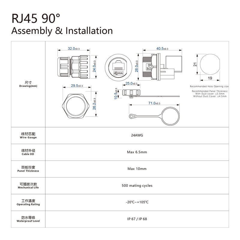 - ✅🔌[Sturdy & High-Quality] This Ethernet connector has IP67, CE, ROHS certificates. The shell is made of high-quality nylon PA66 material with high temperature resistance and 94V-0 flame retardancy. The sealing ring material is silicone. With exquisite craftsmanship, the ethernet cable connector has a long lifespan. Mechanical Life: 500 mating cycles.