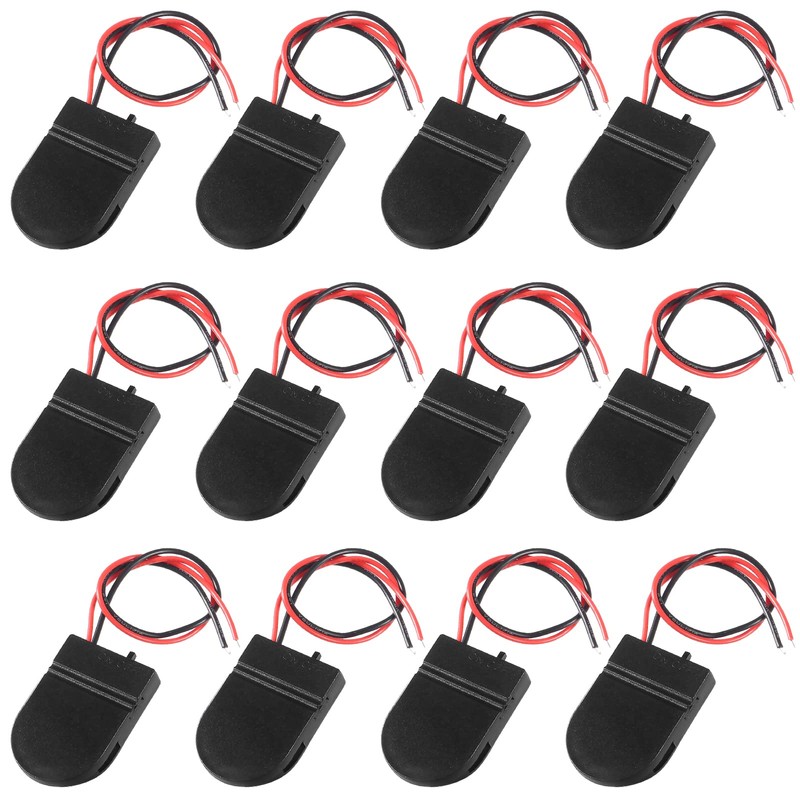 AOICRIE 12PCS 1X 3V CR2032 Battery Holder Coin Button Cell Battery Holder Case with ON/Off Switch Lead Wire Type (Black)