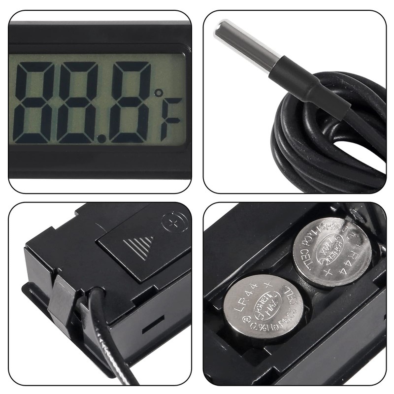 - Wide application: suitable for refrigeration furniture, display counter and other needs of temperature measurement including measuring the temperature inside and outside the car; measuring the temperature inside and outside the air-conditioned room inside and outside the refrigerator; measure body temperature; measure the water temperature of the fish pond; measure the water temperature of a baby shower.