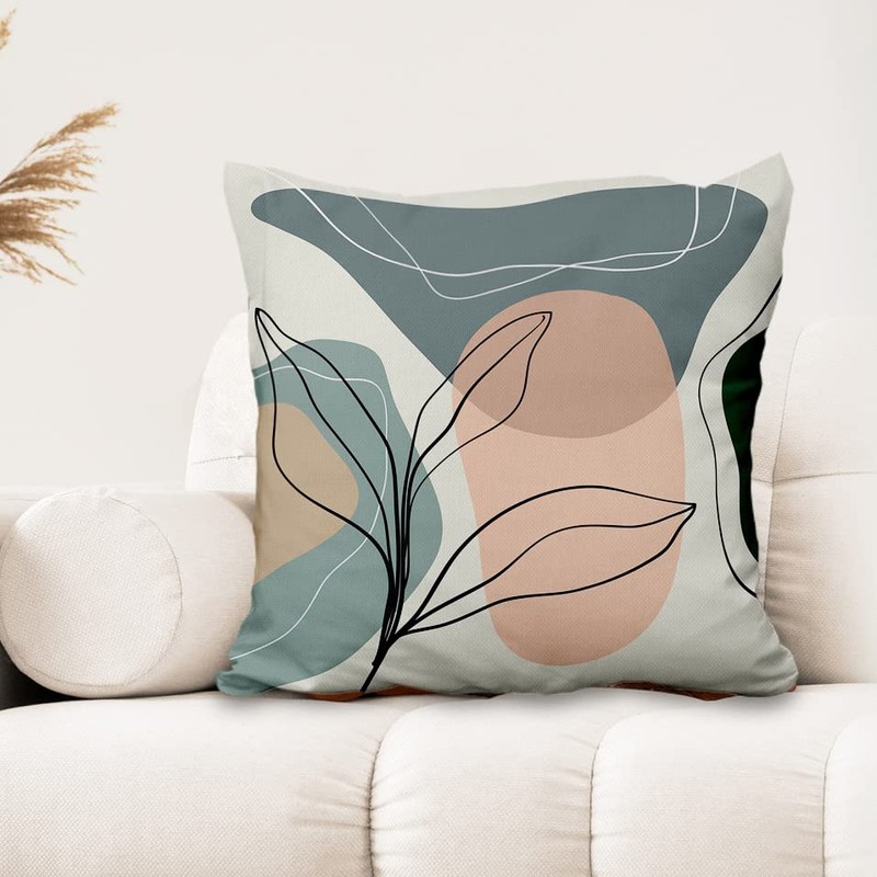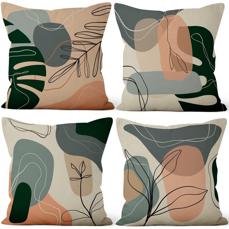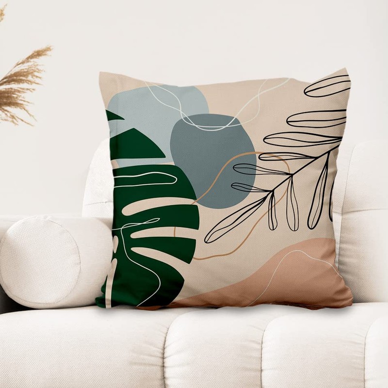 Aoihrraan 46 x 46 cm Set of 4 Decorative Boho Cushion Covers Autumn Leaves Minimalism Geometric Square Sofa Cushion Decorative Cushion Made of Linen Farmhouse Living Room Bedroom Outdoor Patio Garden Sofa