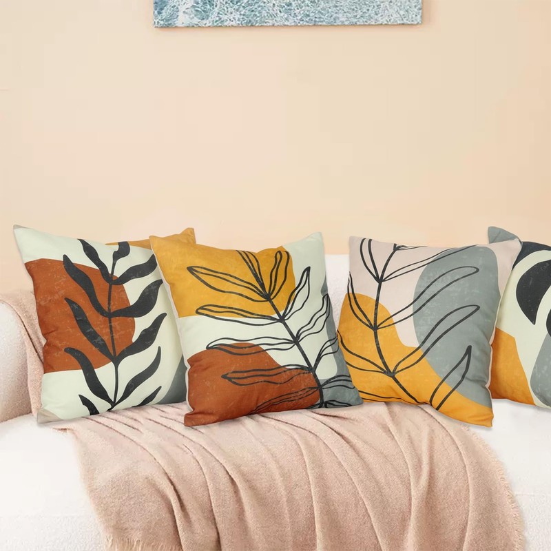 Aoihrraan Cushion Covers Pack of 4, 41 x 41 cm Modern Simple Leaf Decorative Cushion Covers Modern Decorative Square Linen Cushion Covers with Invisible Zip for Sofa Car Bedroom