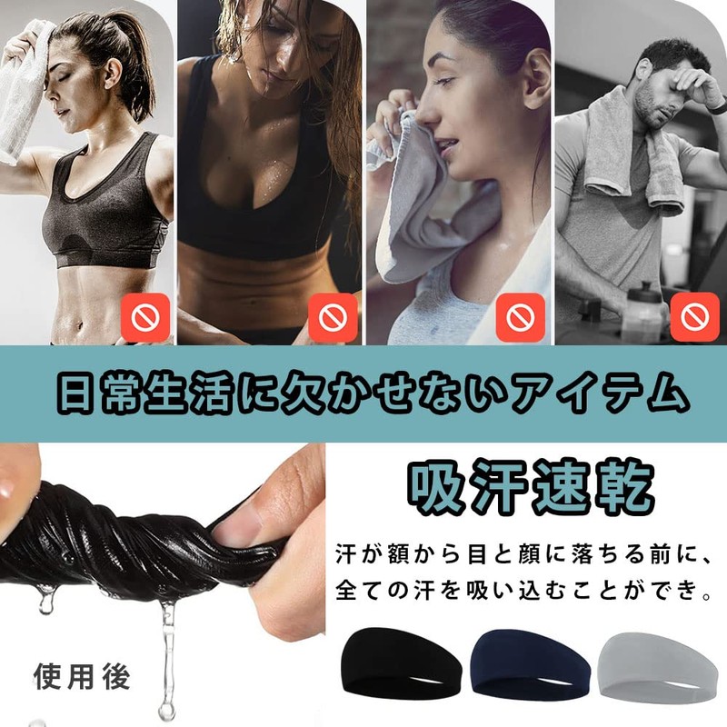 AOIIWER Headband, Sweatband, 3-Piece Set, Sports Turban, Thin, Men's, Stretchy, Breathable, Light and Quick Drying, Hair Tie, Running, Yoga, Gym, Muscle Training, Athletic, Facial Washing, Unisex