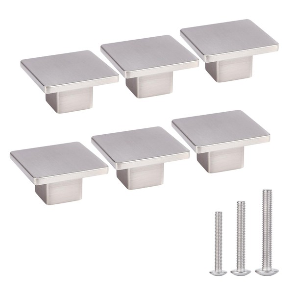 AOKENBAO1.57 Inch Square Kitchen Cabinet Knob Drawer Knob Satin Nickel Cabinet Hardware Solid Cabinet Handle Modern Hardware Knob 6-Pack(High-end Nano-Coated Brushed Nickel)