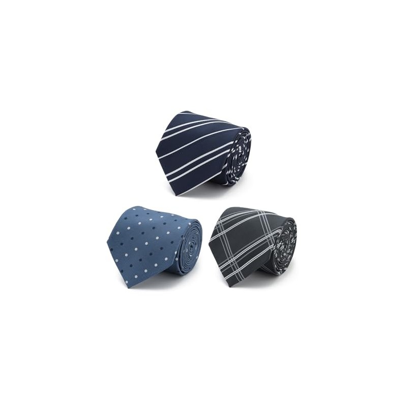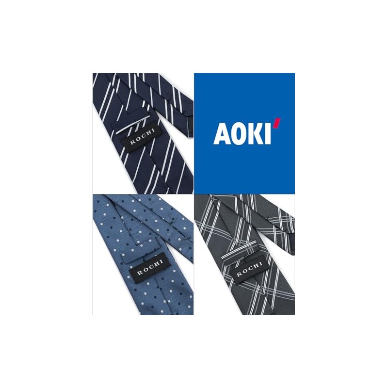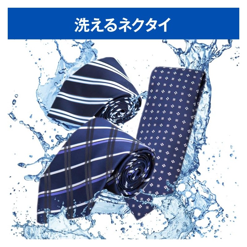 Aoki ASET18A900 Men's Necktie, Washable Necktie, 3-Piece Set, Laundry Net Included, Choose Color Variations, For Business, Job Hunting, Father's Day, [Navy Stripe/Blue Dot/Black Checker] 2