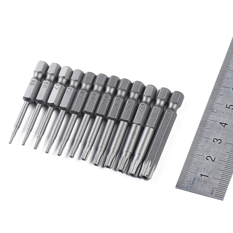 - 【12 Professional Sizes】Including in T5,T6, T7, T8, T9, T10, T15, T20, T25, T27, T30, T40. Each Size is was laser measured for a perfect size measurement! Can be used with any 1/4" hex shank electric screwdriver, manual screwdriver, electric drills, group general tools, etc.