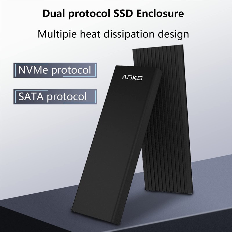 • AOKO NVMe Enclosure Compatible M.2 PCIe NVMe and SATA(NGFF )SSDs, Solve the problem of hard drive idle/expansion/replacement, etc.Great for 4K content designers/engineers and individual gamers.