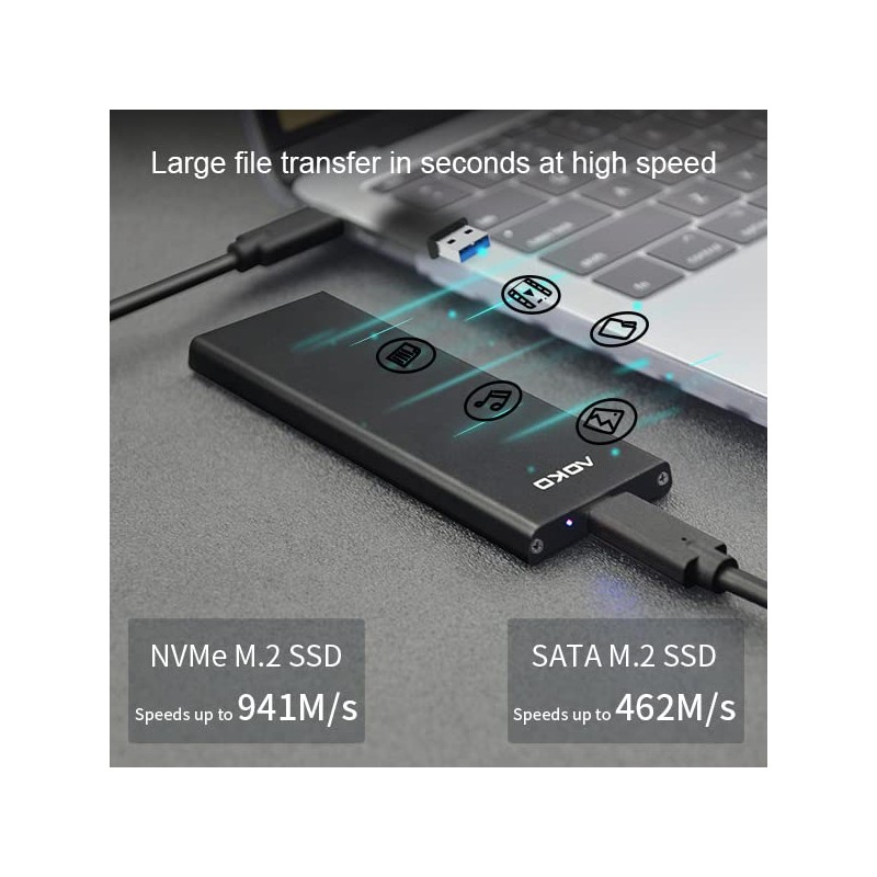 • AOKO External M.2 Case Compatible with both M.2 NVMe and SATA(NGFF) SSD in sizes: 2280/2260/2242 SSDs(Not support mSATA or PCIe AHCI SSDs)
