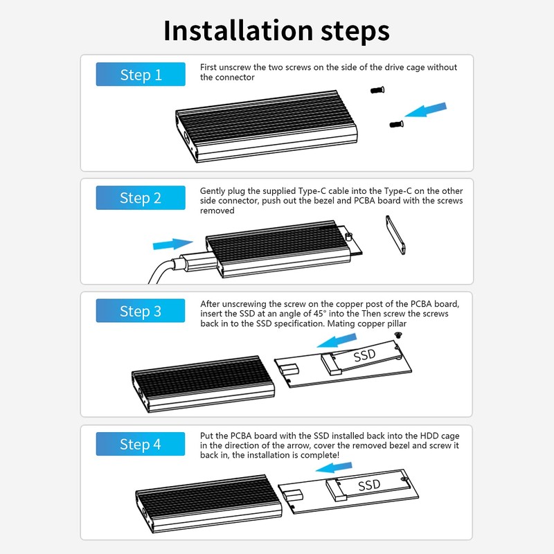 • Package including: 1x M2 Enclosure, 1x C to C+A cable, 1xScrewdriver,1xusers manual.