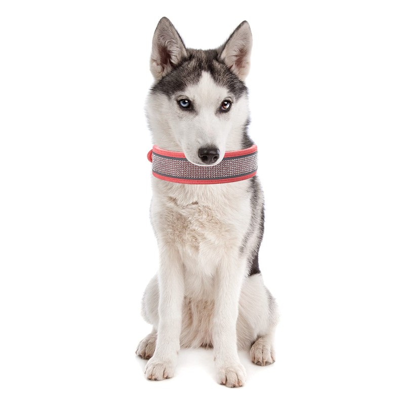 AOKSI Dog Collar,Sparkly Velvet Leather Rhinestone Big Dogs Collars Durable Adjustable Reflective Pet Collar for Medium Large Dogs (M, Pink)