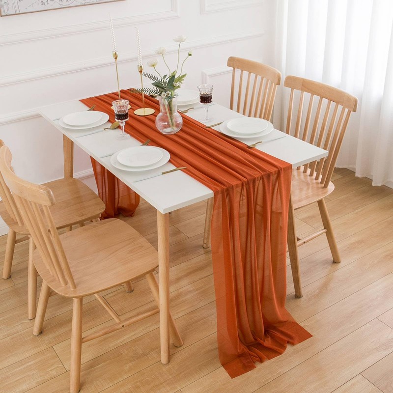 Aoksunova Chiffon Table Runner, Wedding, Terracotta Table Runner, Outdoor Table Decoration