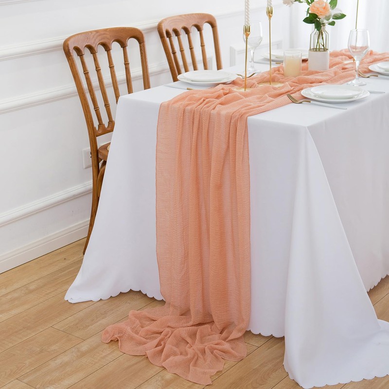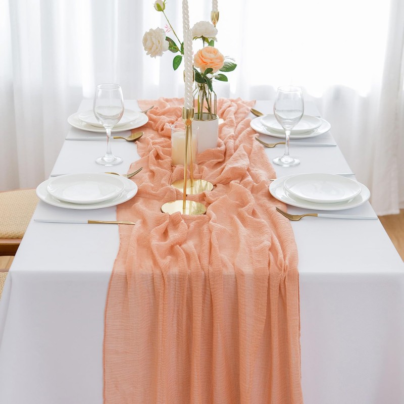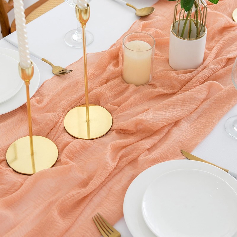 - Soft muslin table runner: This table runner with wrinkled texture is made of super soft cheesecloth fabric. It is romantic, delicate and flowing.