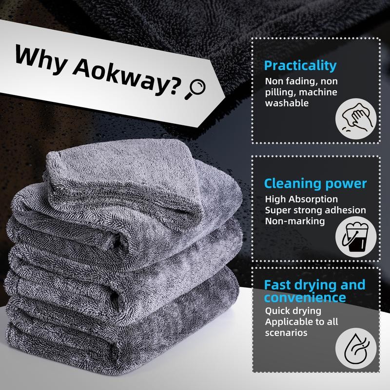 aokway Microfiber Cleaning Cloths(24"x36",Gray),Thickened and Absorbent Microfiber Towels(16"x16",Gray)1-Pack, No Streaks Car Drying Towel, Scratch-Free,1300GSM ,No Water Spots - Size: (16"x16",Gray)1-Pack