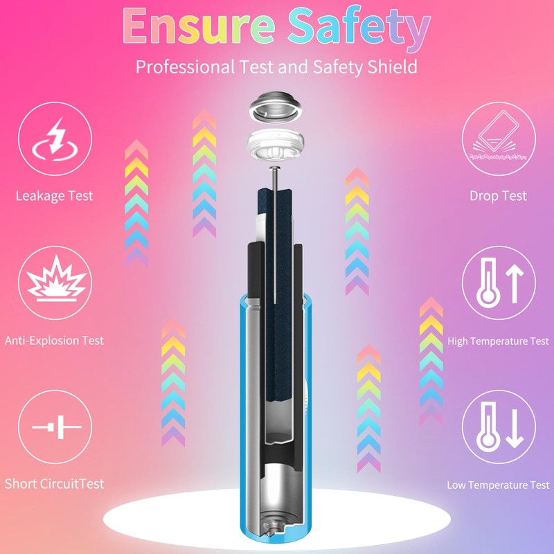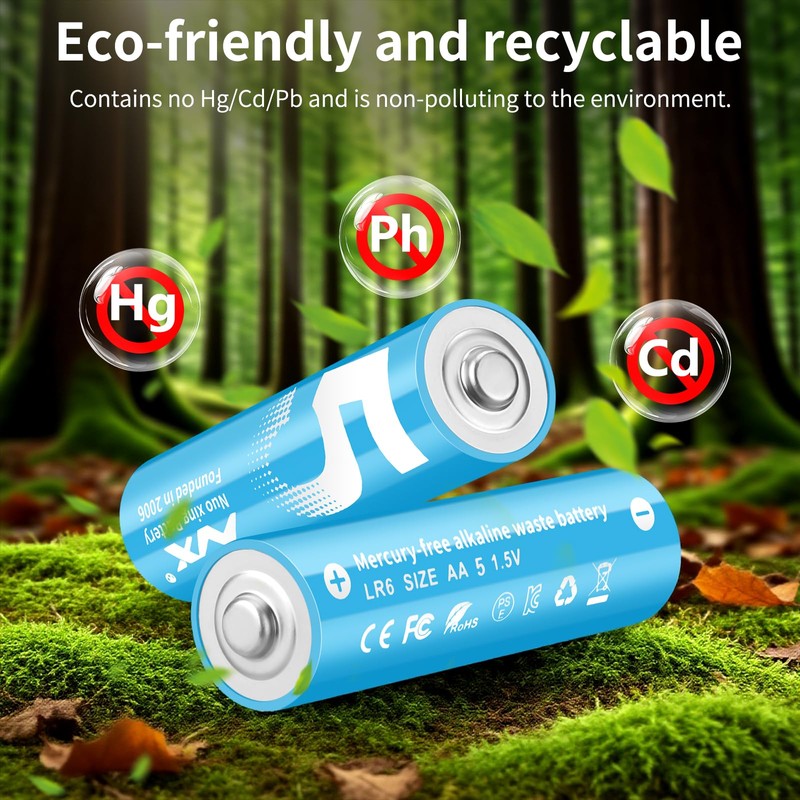 - Safe & Environmentally Friendly Material: Adopting eco-friendly Ni-MH batteries, free of mercury, cadmium, lead and other harmful substances, reusable AA batteries with DBCK steel case and anti-explosion design, effectively preventing liquid leakage and explosion, more peace of mind