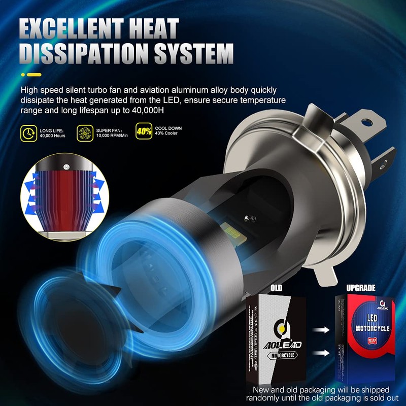 Aolead H4 LED Motorcycle Headlight Bulb, HS1 LED Headlamp with Angel Eye, DC 12V 6000K