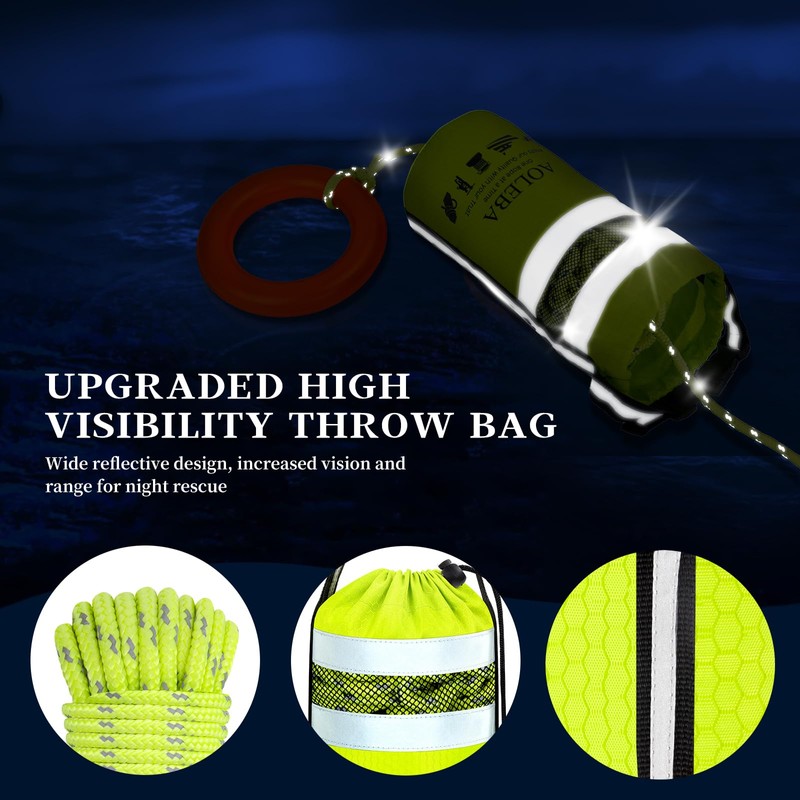 - HIGH VISIBILITY AND NIGHT REFLECTION: Water rescue throw bag features high-visibility colors and robust construction to ensure it stands out in an emergency! Reflective throw rope and upgraded throw bag with wider reflective strips ensure visibility in low light emergencies.