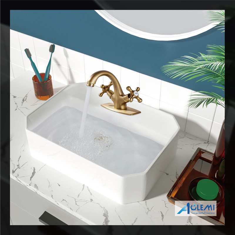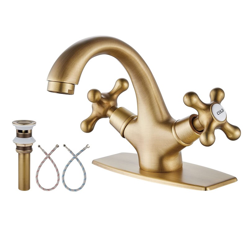 - 【All Metal Construction】Water Use Information: 1.19gpm 4.5L/min Deck mounted 1 hole basin cross handle bathroom faucet constructed from solid brass, antique brass finish,prevent to be discolored and rusty.Suitable for lifelong use