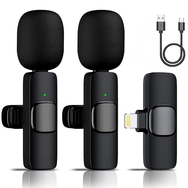 Aolemoa Wireless Microphone for iPhone iPad, Wireless Lavalier Microphone, Mini Mic Clip-on Microphones for Video Recording, Live Stream, Interview, Tiktok, Vlog, Podcast, YouTube, 2 Pack