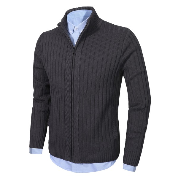 AOLI RAY Men's Cardigan with Zip Cardigan Stand-Up Collar Pullover Fine Strike Sweaters with 2 Pockets, Tech Grey