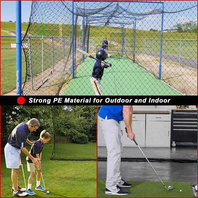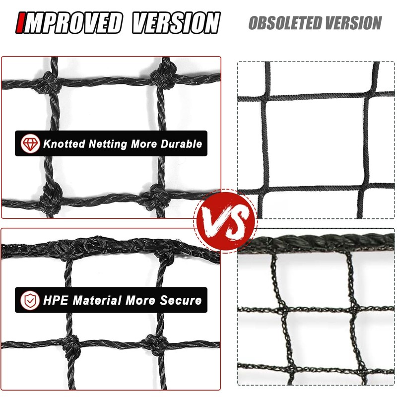 - 【Rope Border for Reinforcement】golf hitting net,The sports netting for hitting features overlocked rope edging to keep edges from splitting or fraying,which further increases the sturdiness of this baseball backstop netting material.