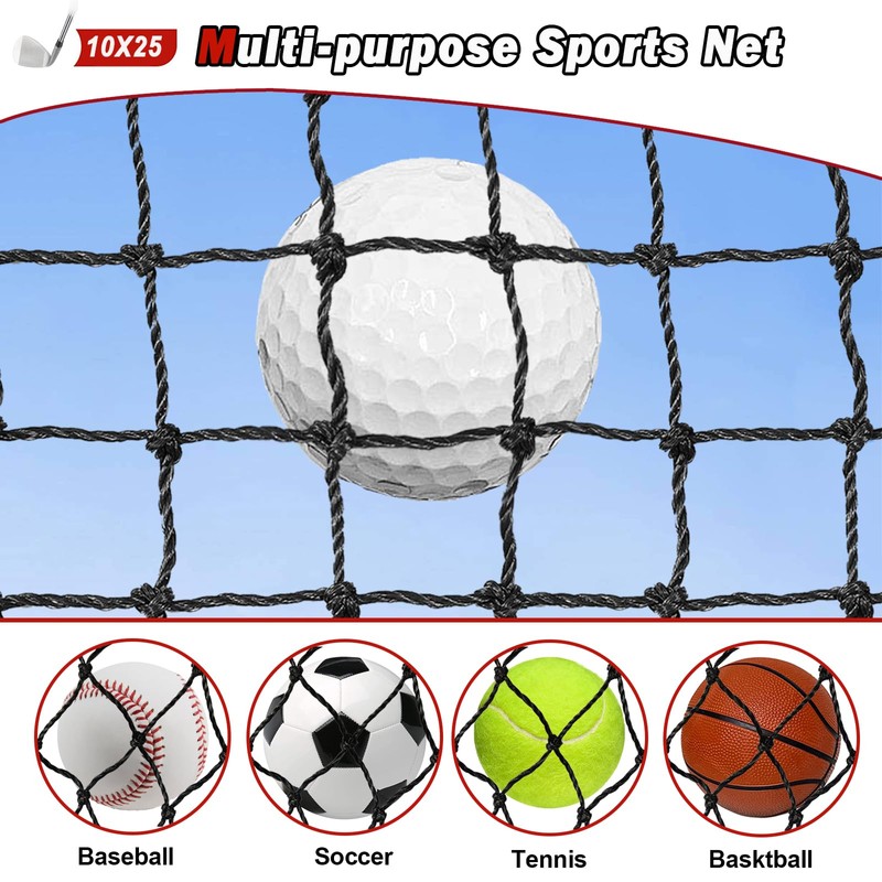 - 【Wide Uses】Sports netting barrier is widely applied to golf balls, baseball, hockey, soccer, football, basketball, lacrosse.A good way to practice hitting the ball and prevents a wild golf ball from straying into a neighbor's yard or window.